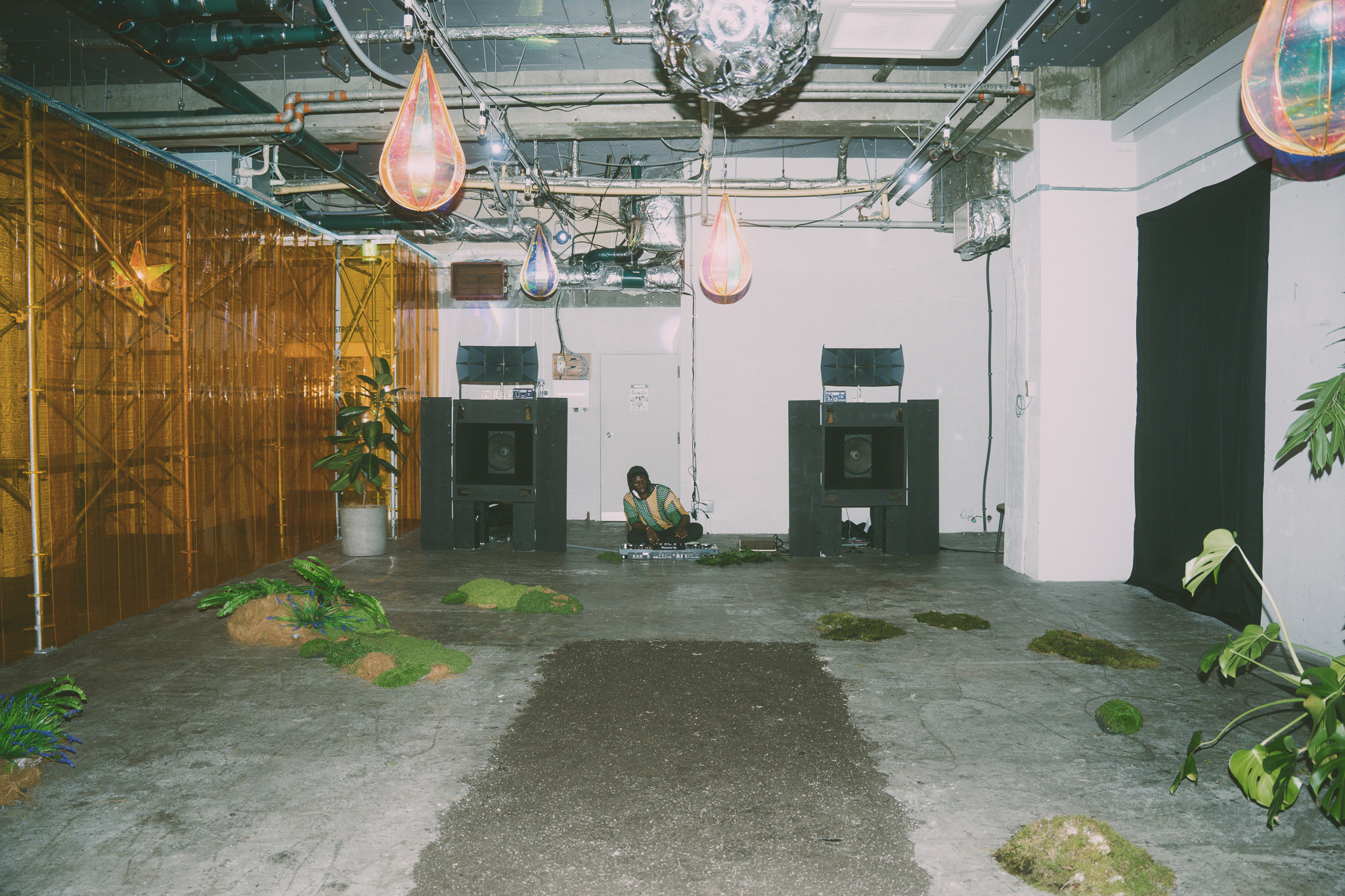 WPUのギャラリースペースの中では、コンクリートの床や壁が土や緑、植物によって柔らかく包まれている。2つのスピーカーが空間を満たし、没入感のある音が流れる。その音は展示の深みを余すところなく感じ取るのに十分だ。マルチに活動するアーティスト eejebeeは、インスピレーションを求めるだけでなく、「土地」「血脈」「音」との深い再接続のため、世界中を旅してきた。ガーナからモロッコ、エチオピア、東京へ──彼の作品は音楽、瞑想、記憶を融合させた多感覚的な体験へと結実し、それが《Sankofa Flora(サンコファ・フローラ)》である。今回のインタビューでは、eejebeeがプロジェクトのルーツ、植物の癒しの力、そして「あなたとともに、あなたのために成長する音」のビジョンを語ってくれた。